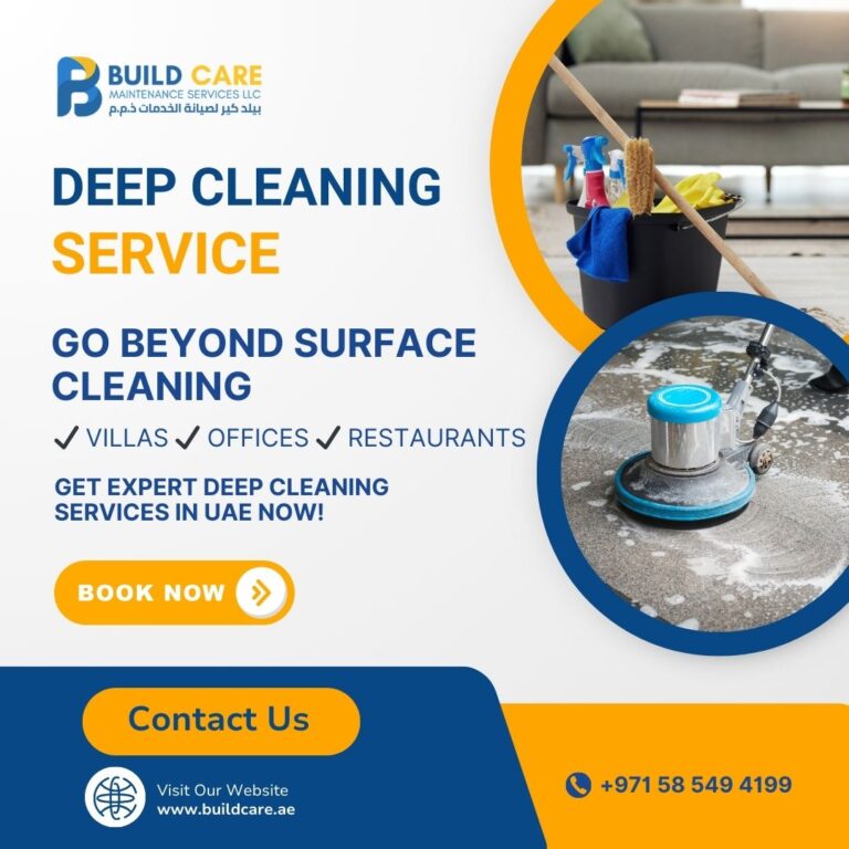 Looking for reliable and top-quality deep cleaning services in UAE? At Buildcare, we offer specialized cleaning solutions for villas, offices, restaurants, and commercial properties. Whether you’re searching for Villa deep cleaning services near me or need expert office deep cleaning in UAE, our team delivers unmatched results.